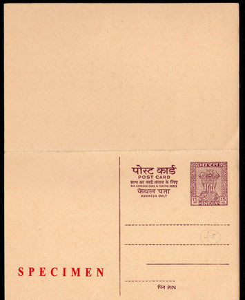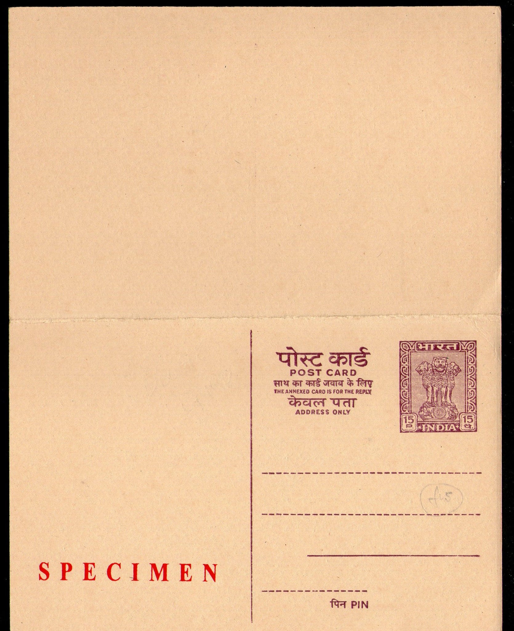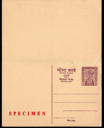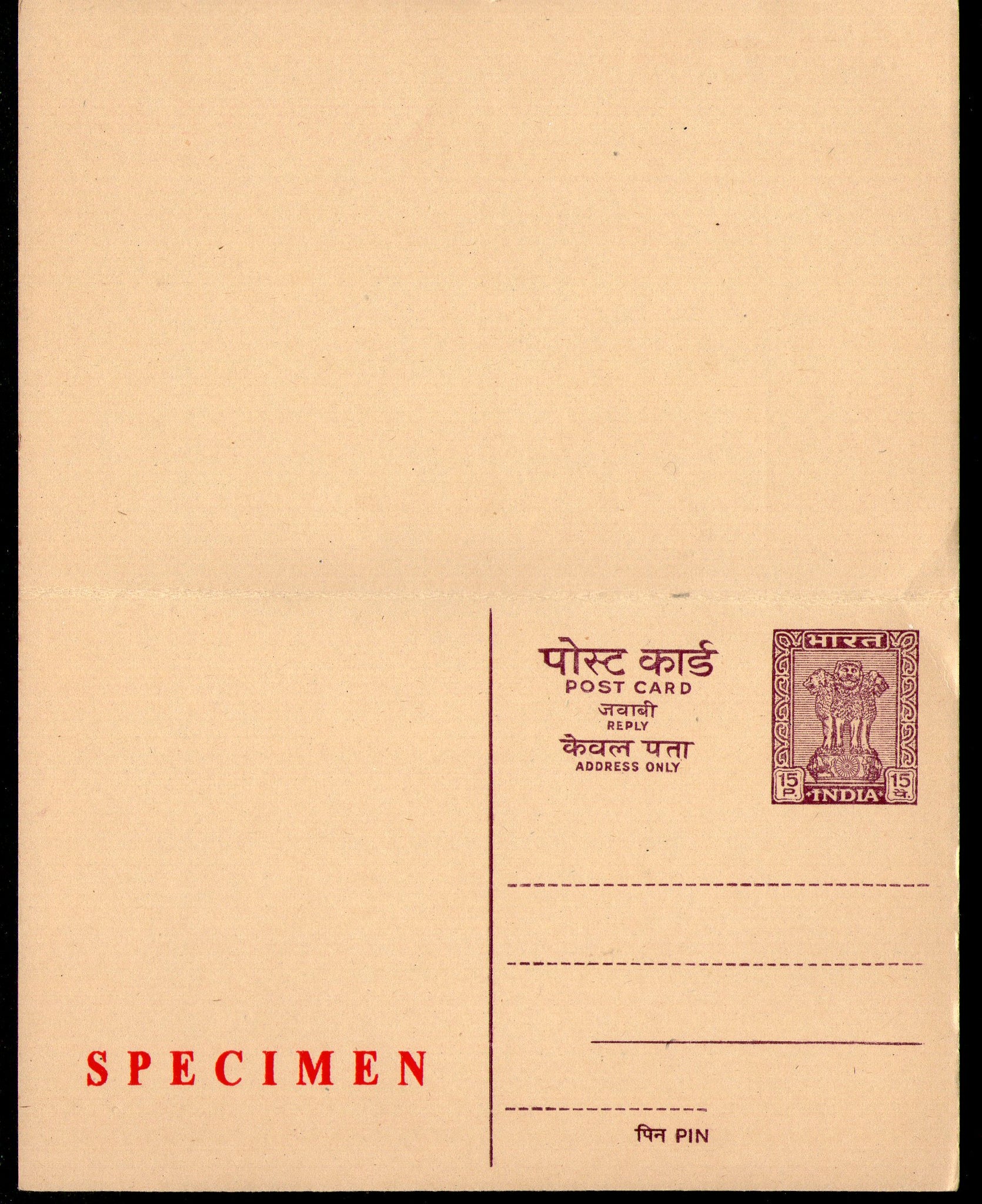 India 1974 15p+15p Ashokan Reply Post Card SPECIMEN MINT Postal Stationary RARE