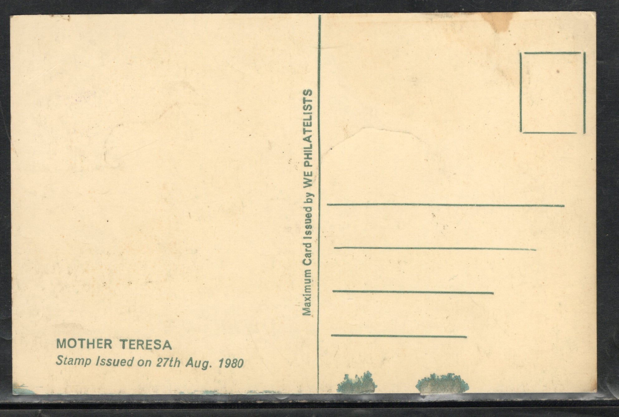 India 1980 Mother Teresa Noble Prize Winner Max Card # 7645 Faulty