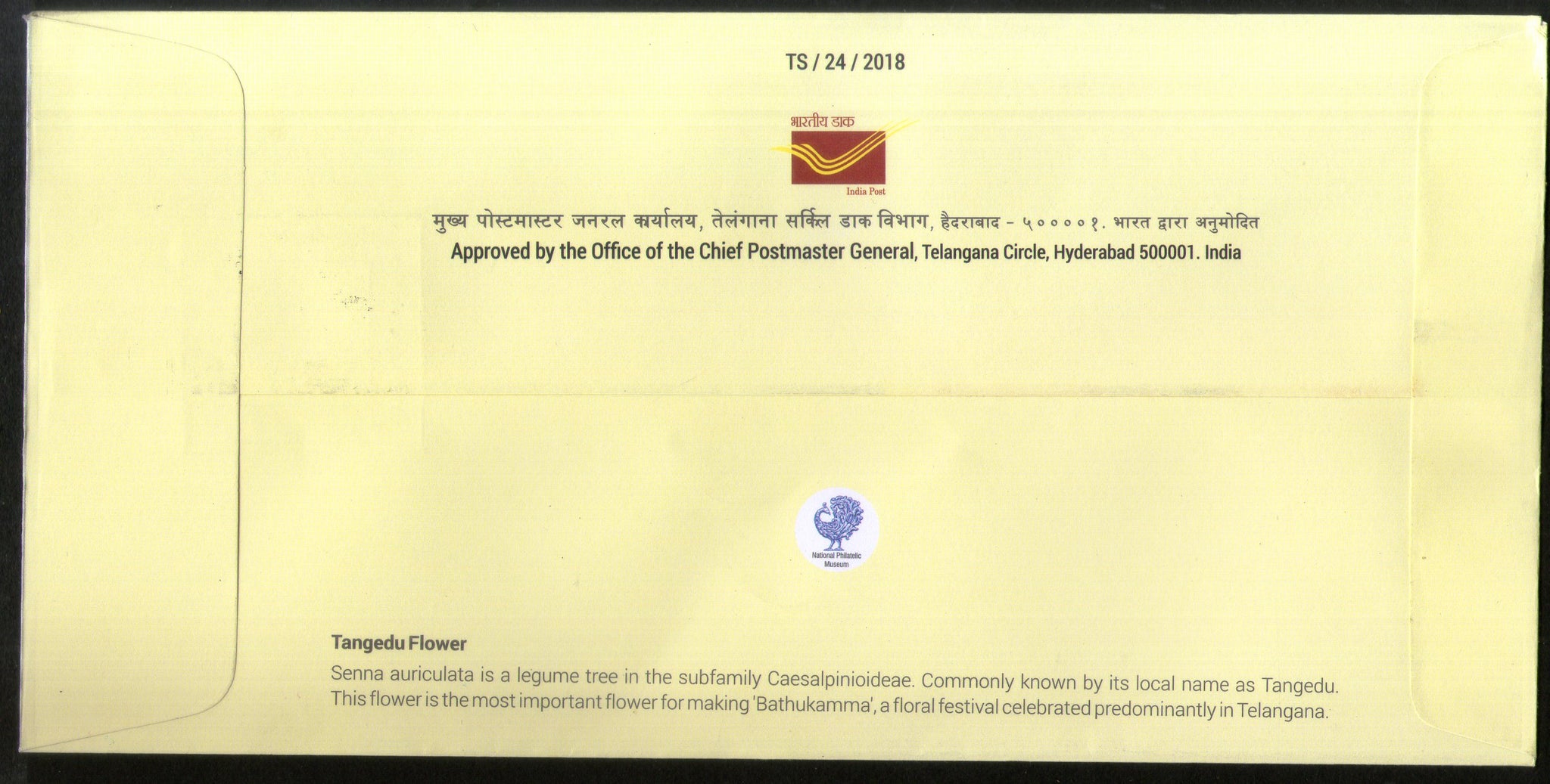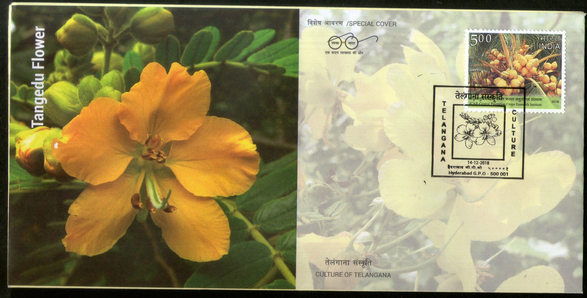 India 2018 Tangedu Flowers Plant Culture of Telangana Special Cover # 18361