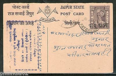 India Jaipur State ½A O/P ¼A Man Singh Postal Stationary Post Card Used # 16219A