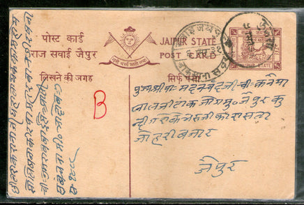 India Princely State Jaipur ¼ An Chariot Horse Postal Stationary Post Card Used # 5625