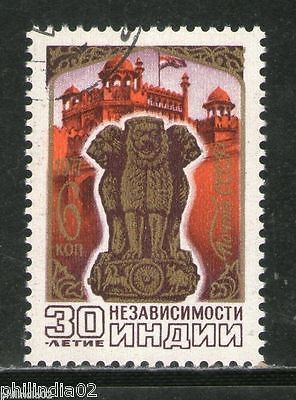 Russia 1977 India’s Independence Anni Capital Ashoka Pillar Red Fort Cancelled # 3732