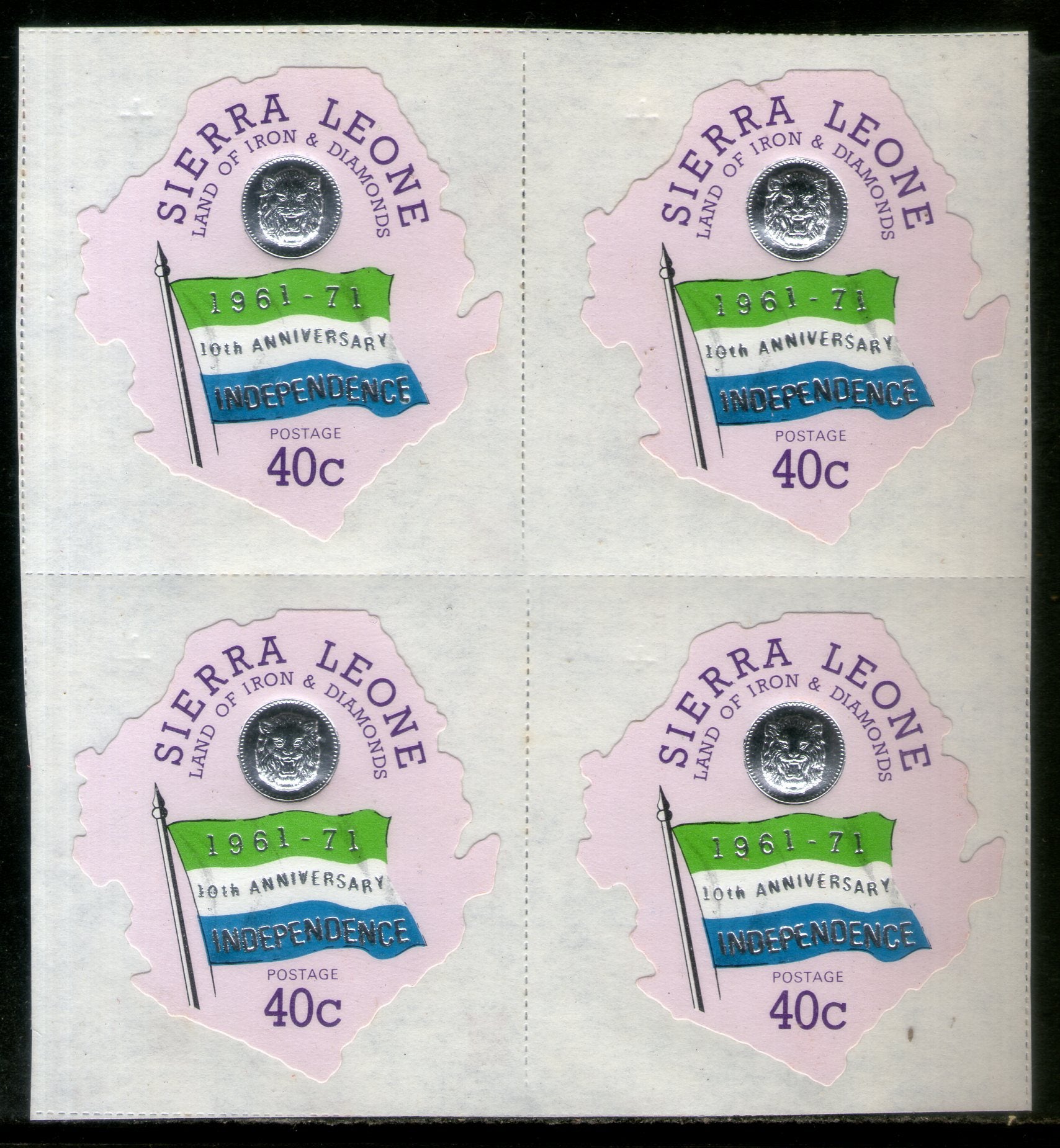 Sierra Leone 1971 40c Flag Map Coin Odd Shaped Sc 420 BLK/4 MNH # 5508B