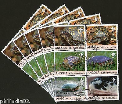 Angola 2000 Tortoise Reptiles Amphibians Fauna Setenant BLK/6 CancelledX5 #13491
