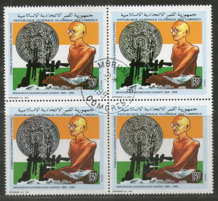 Comoros Rep. 1991 Mahatma Gandhi of India With Spinning Wheel BLK/4 Cancelled # 2493
