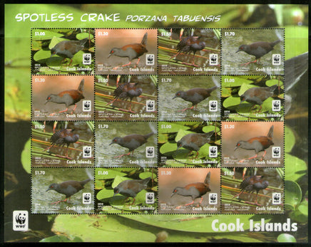 Cook Islands 2014 WWF Spotless Crake Birds Wildlife Animal Sc 1520-23 Sheetlet MNH # 19218