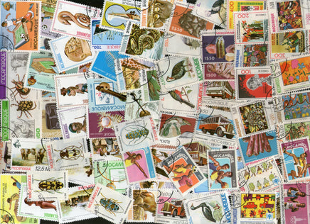 Mozambique 100 Diff Used Stamps on Stamps Butterfly Bird Ship Animal Paintings Sports Fish