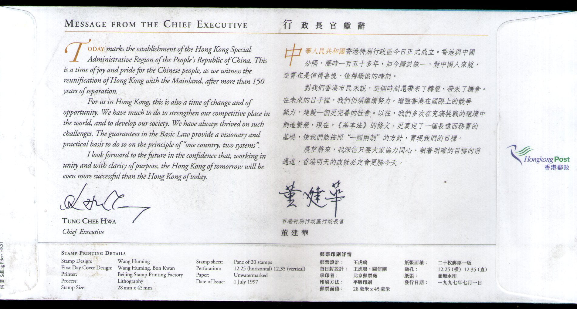 Hong Kong 1997 Hibiscus Flower Sc 798a M/s FDC # F110