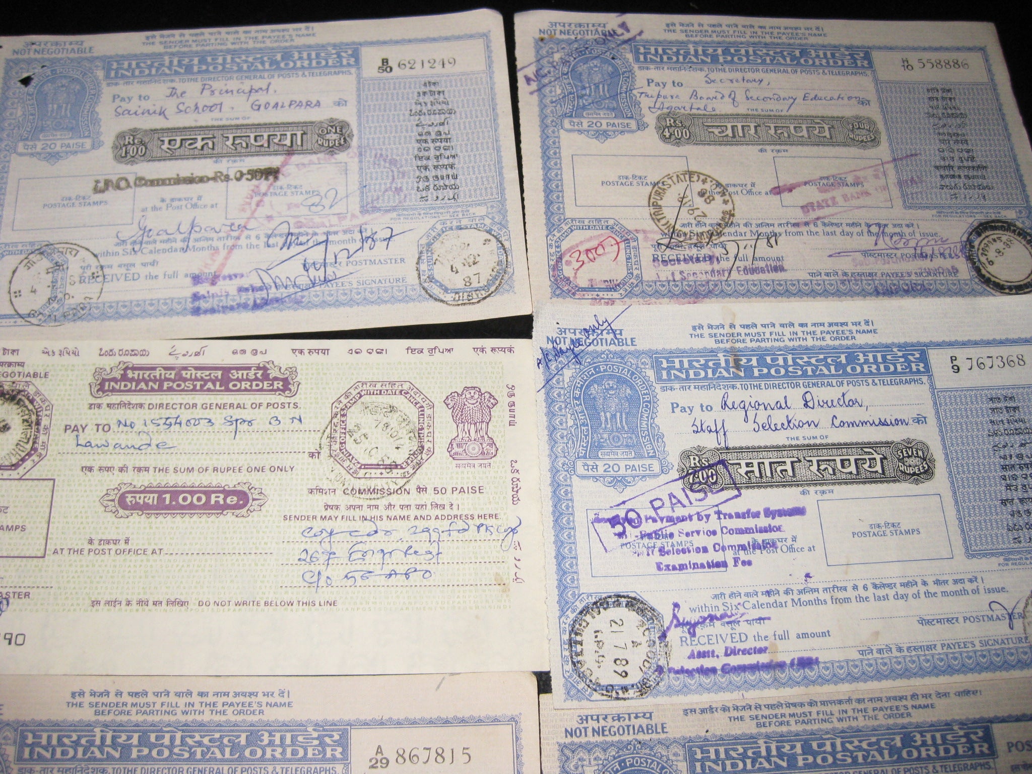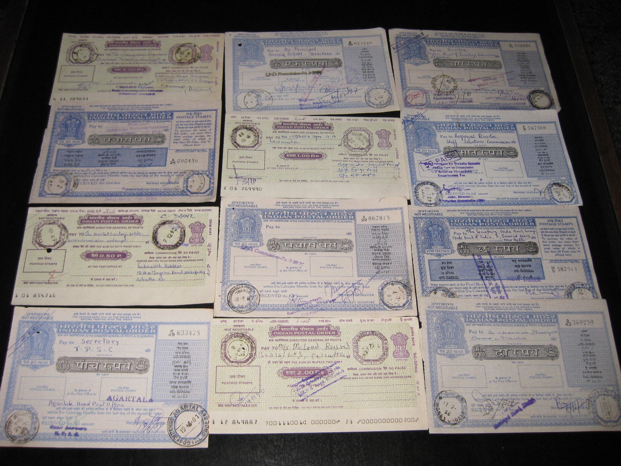 India 12 Different Postal Order up to Rs. 7 Good Condition Used RARE # 8038 Free counters!