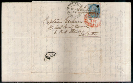 India 1869 Formula Letter Sheet f.w. QV ½An t.w. FYZABAD Duplex Canc. to Calcutta with Red Cds # 9235