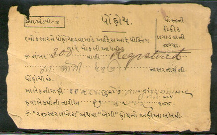 India 1892 Amran / Kattywar to Bombay Canc on Acknowledgement # 5892