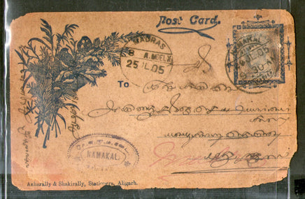 India 1905 3ps KEd Stamped Bazar Card t.w. Namakal Cds # PH3125