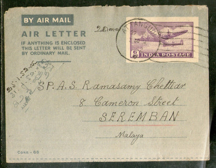 India 1951'S 6As Aerograms JAIN-ALS13 to Malaya Good used # 7679A