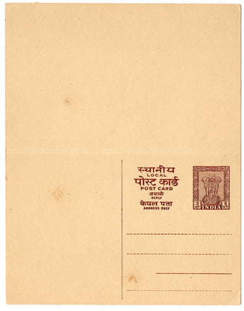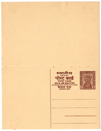 India 1959 3p Ashokan Bilingual LOCAL REPLY Post Card # 19121