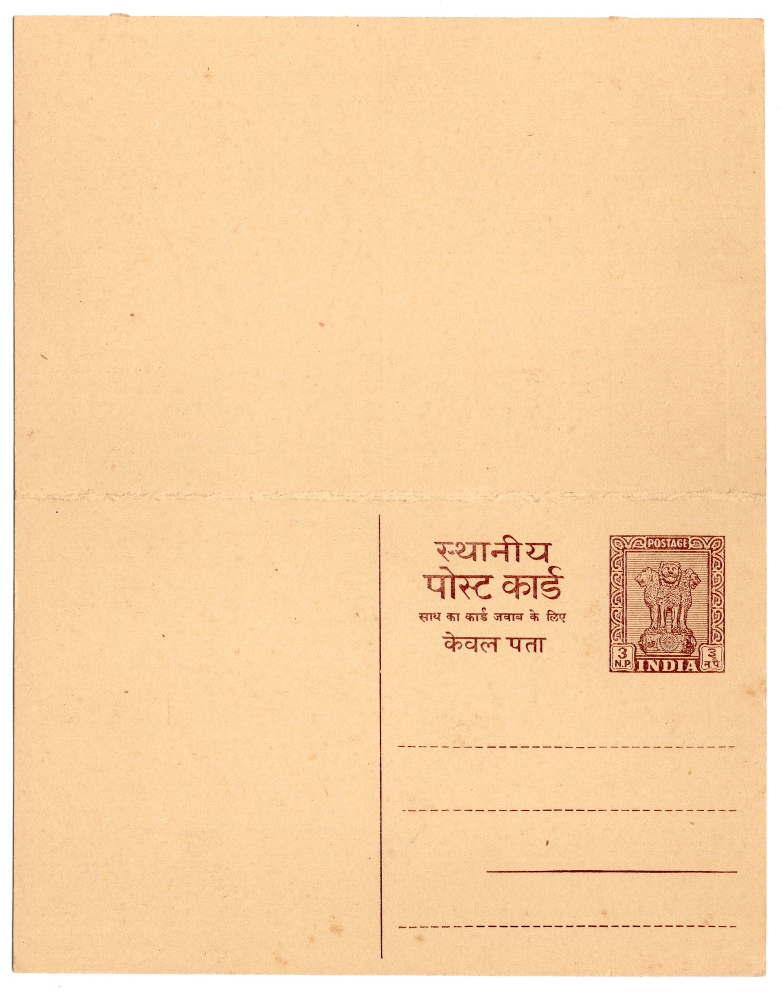 India 1957 3p Ashokan Jain-P82 LOCAL REPLY Post Card # 19115