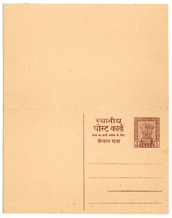 India 1957 3p Ashokan Jain-P82 Hindi LOCAL REPLY Post Card # 19115