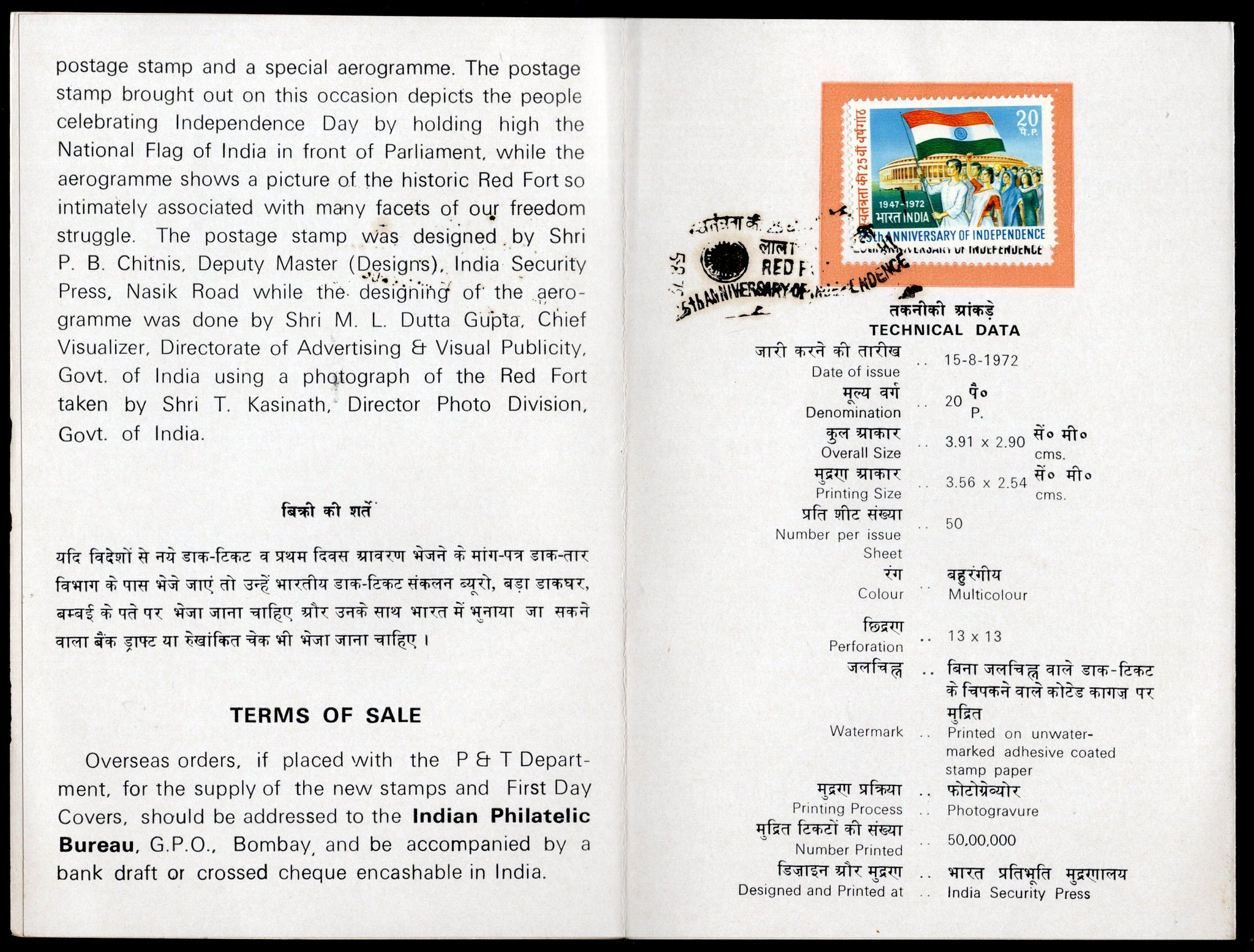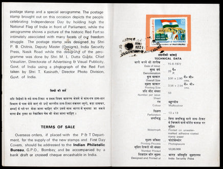 India 1972 25th Anniv. of Independence Flag Phila-553 Cancelled Folder # 7573
