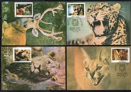 India 1976 Wildlife Animals Lion Deer Leopard Caracal Phila-699-702 Max Cards # 7559