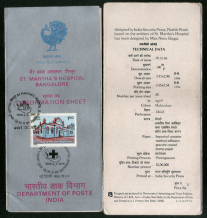 India 1986 St. Martha's Hospital Bangalore Health Cancelled Folder