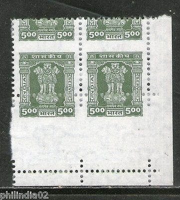 India 1998 Ashokan Capital Lion Rs. 5 ERROR Perf Shifted Down BLK/4 MNH # 3532A