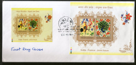 India 2003 India - France Joints Issue Rooster Peacock Bird Phila-2019 M/s on Private FDC Extremely RARE