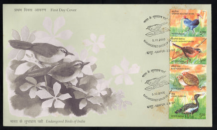 India 2006 Endangered Birds Fauna Phila-2211 Se-tenant FDC # 9068