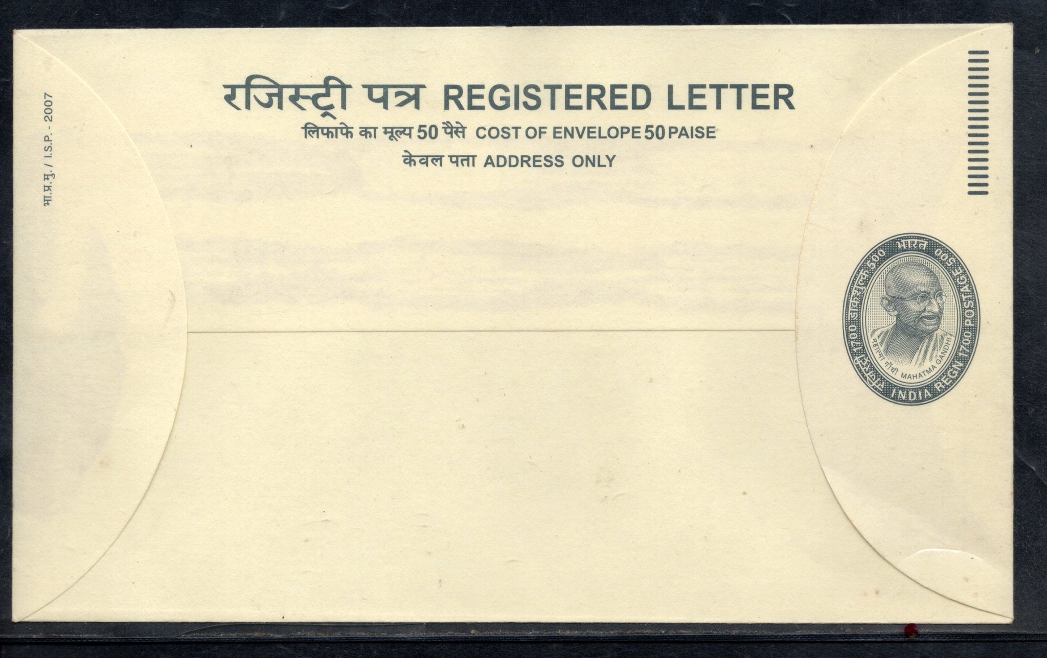 India 2007 1700+500 Mahatma Gandhi Registered Postal Stationery Envelope MINT # 7128