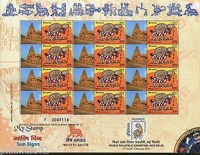 India 2011 Sun Signs - Aries - Brihadeeswarar Temple Heritage My stamp Sheetlet