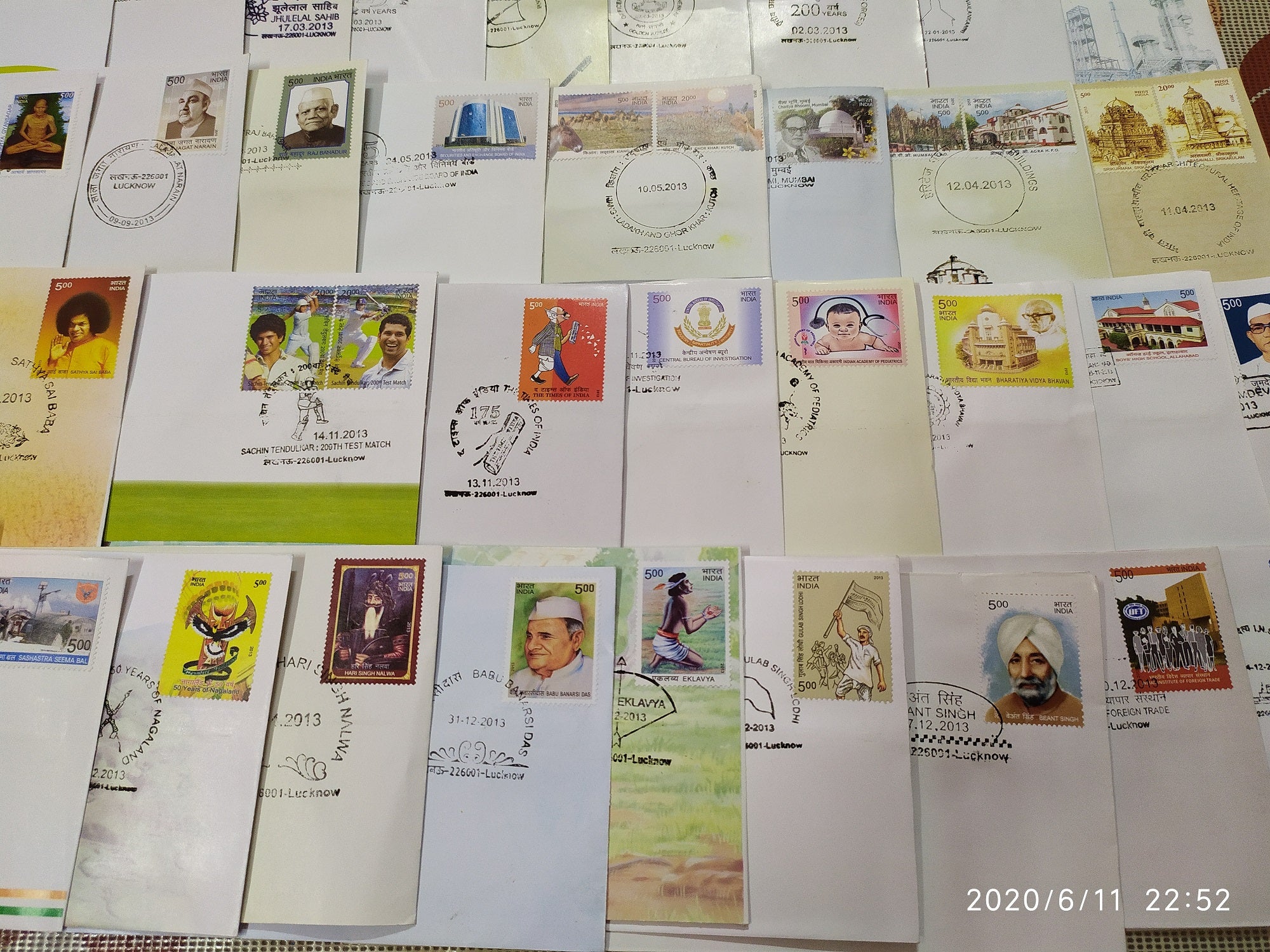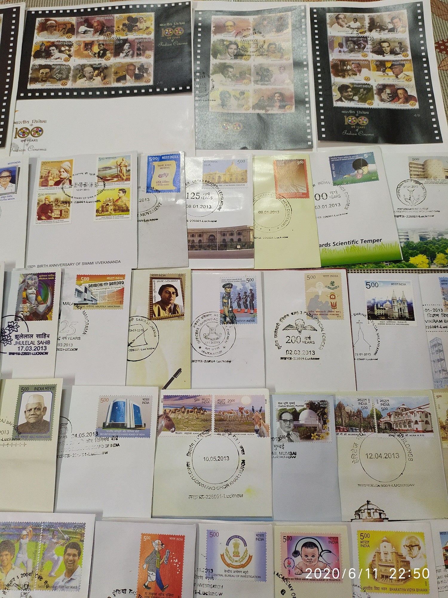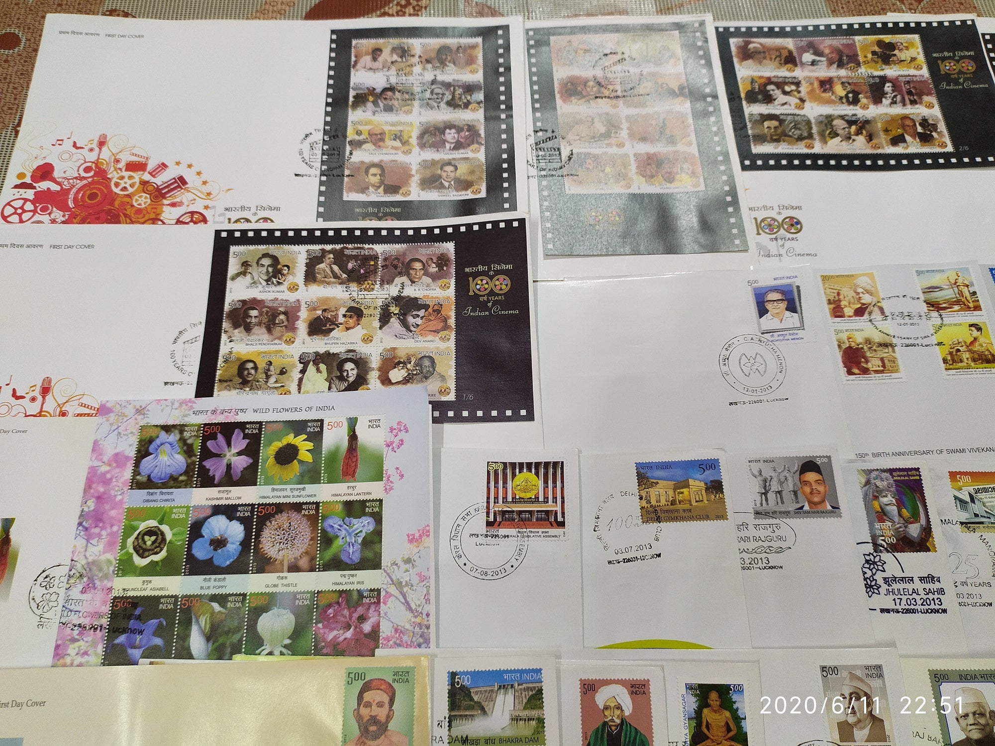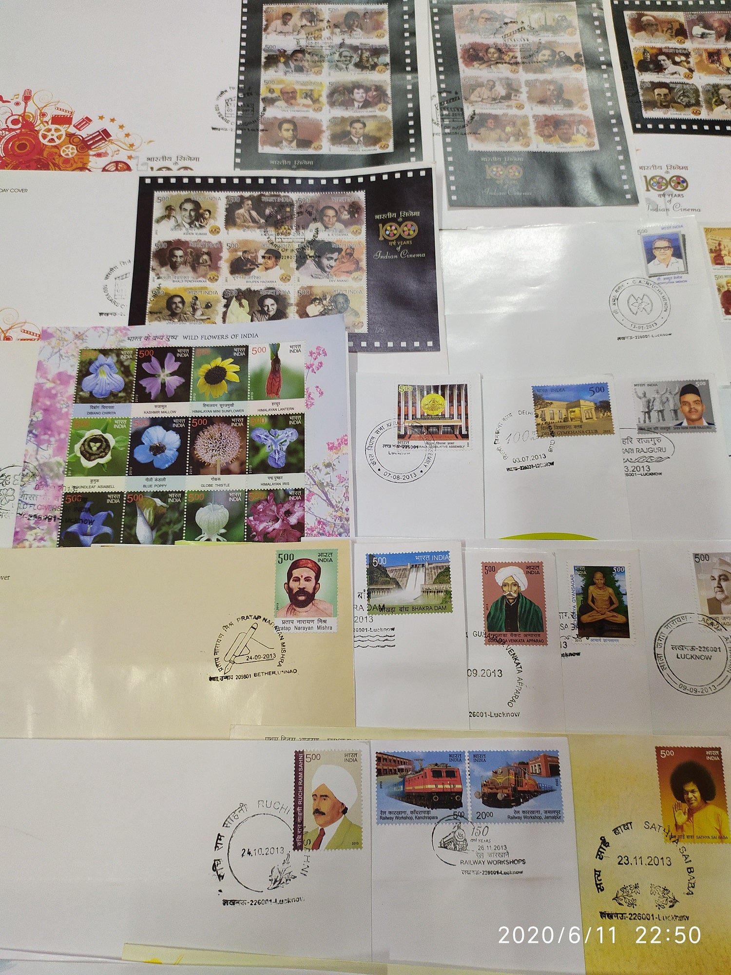 India 2013 Year Pack of 57 FDCs on Cinema Flowers Sikhism Dam Railway Cricket Wildlife Vivekananda