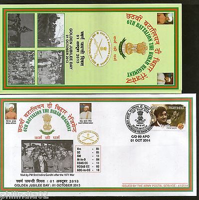 India 2014 6th Battalion Bihar Regiment Military Coat of Arms APO Cover # 7291B