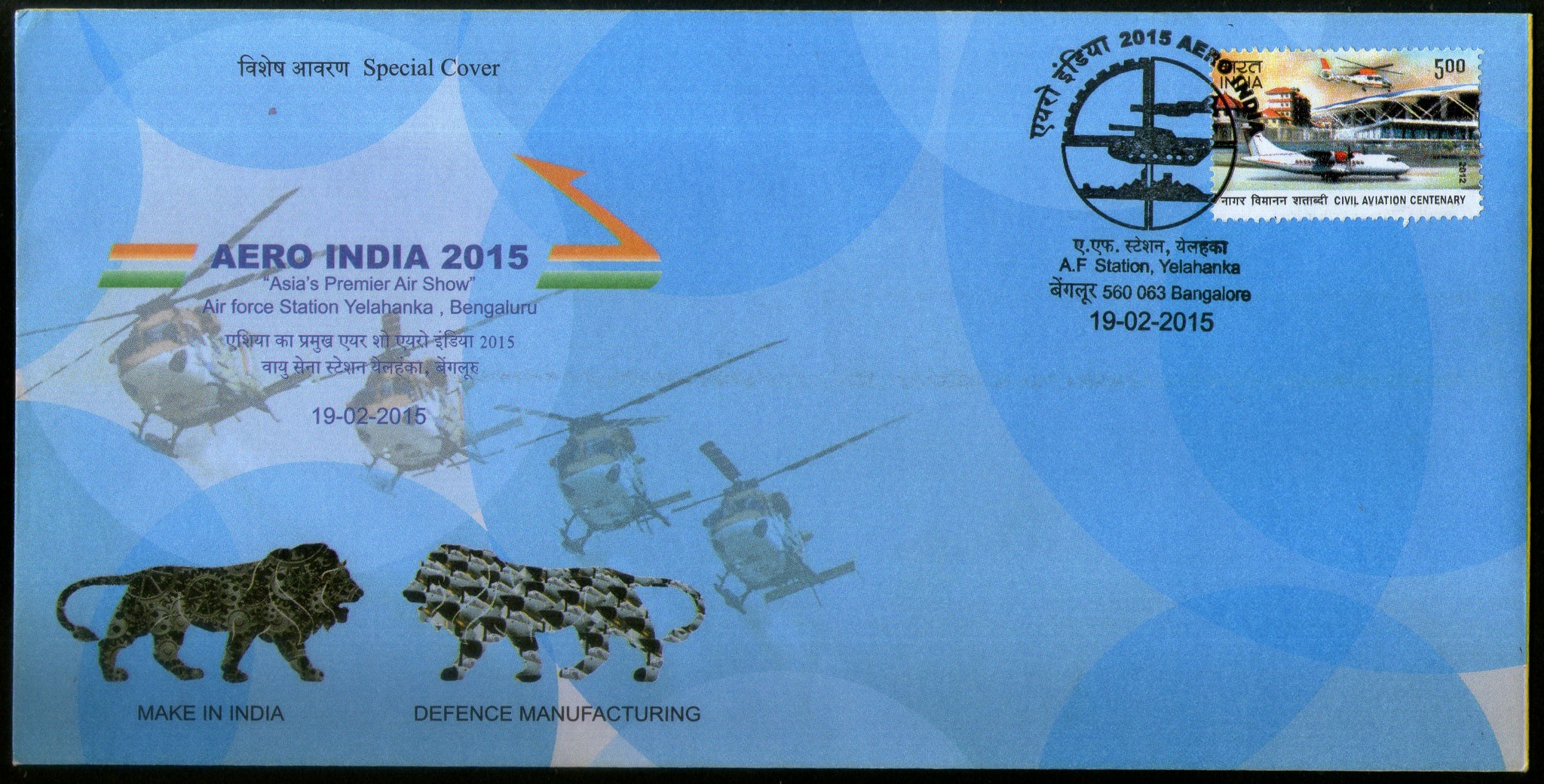 India 2015 Aero India Air Force Station Aviation Helicopter Lion Special Cover # 6774