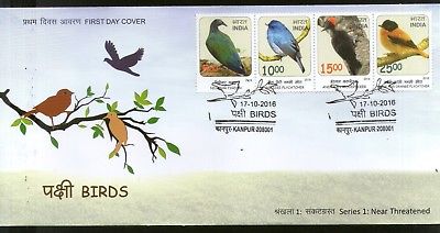 India 2016 Birds Near Threatned Pigeon Flycatcher Woodpecker Wildlife Strip FDc