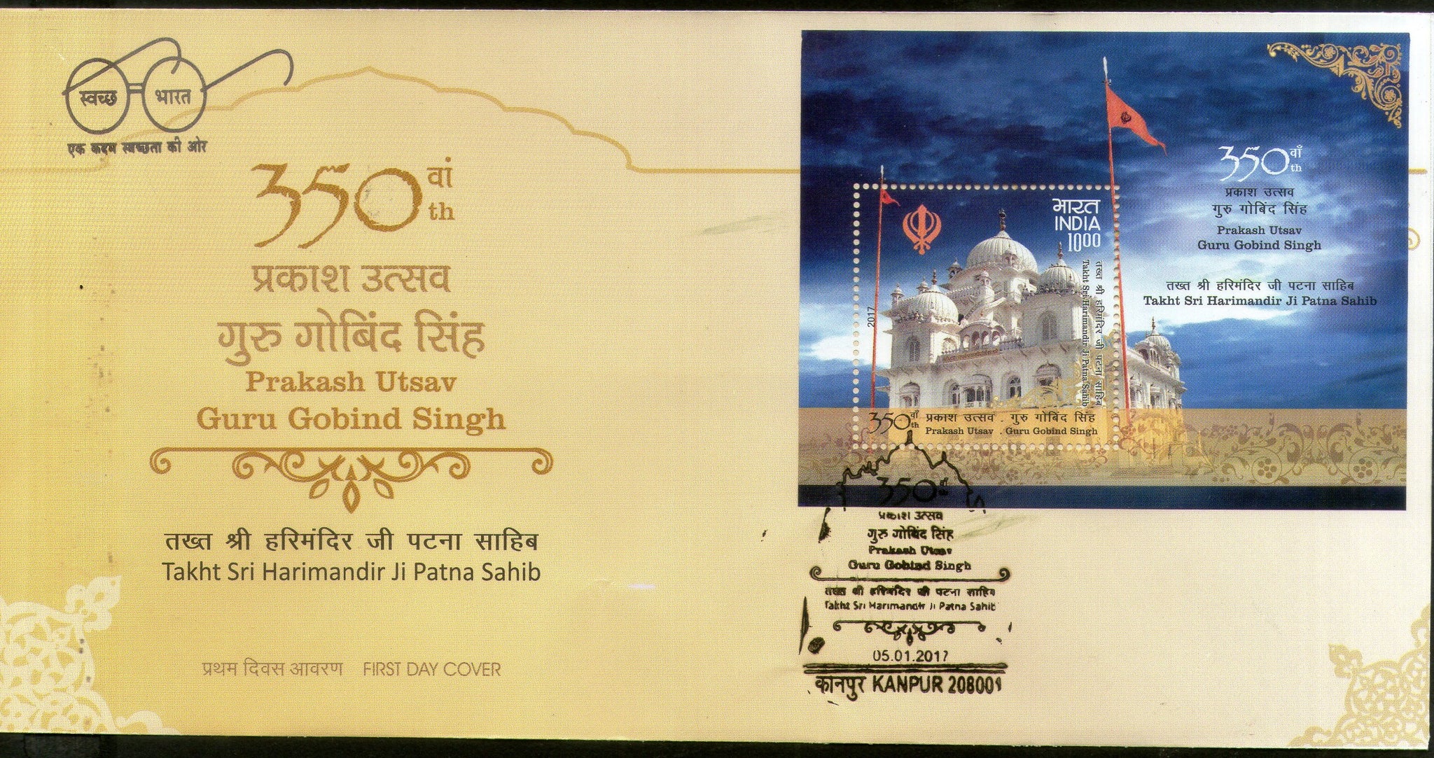 India 2017 Guru Gobind Singh 350th Prakash Utsav Patna Sahib Sikhism M/s FDC