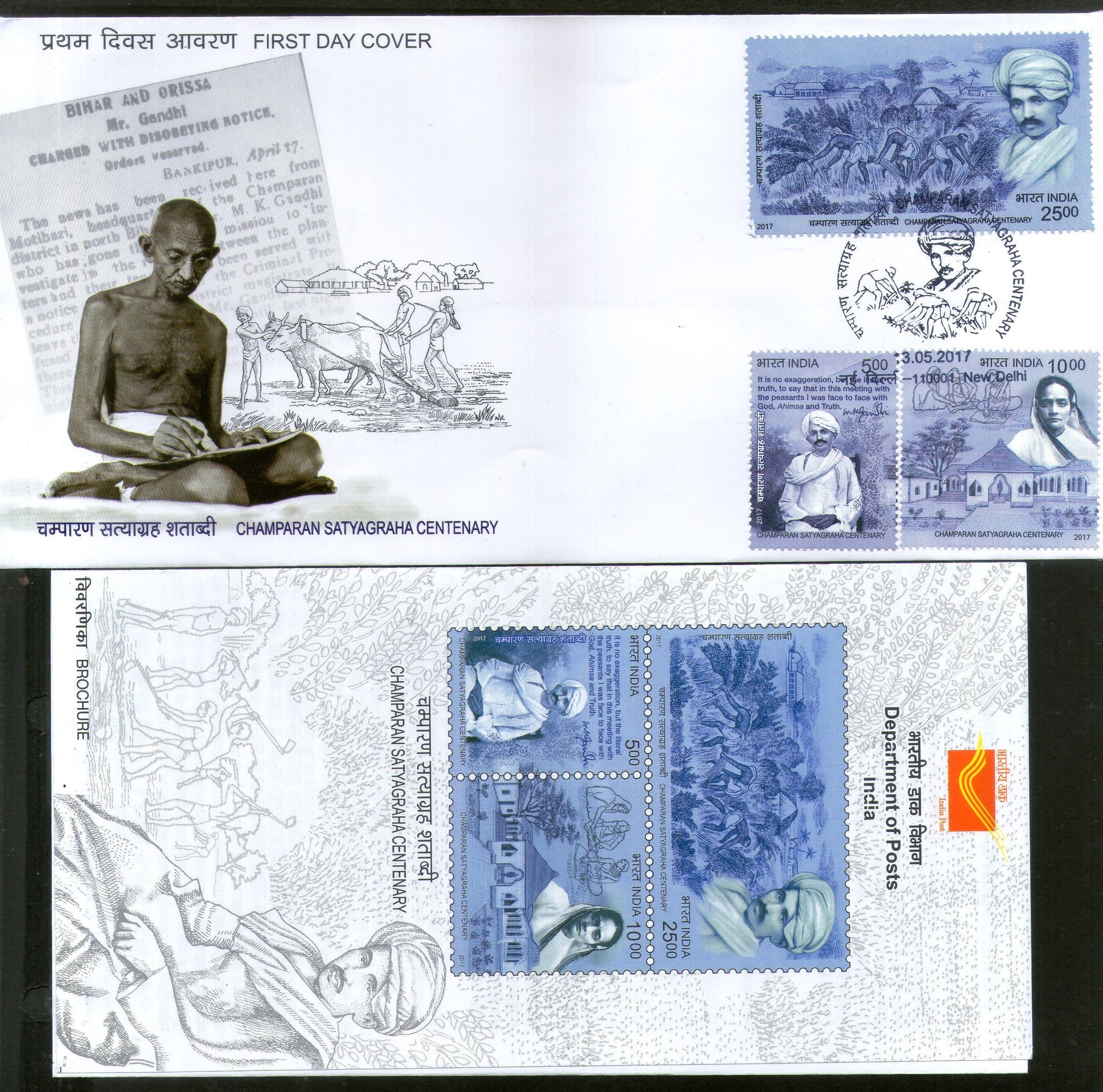 India 2017 Mahatma Gandhi Champaran Satyagraha Centenary Farmers 3v FDC