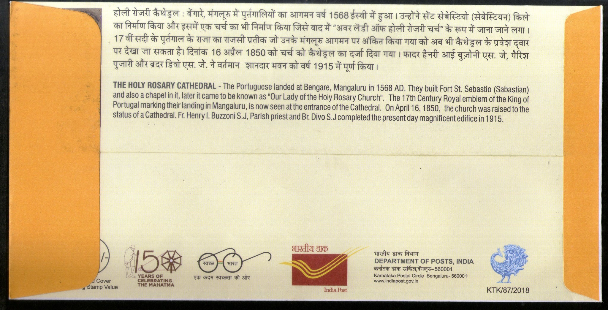 India 2018 Our Lady of Holy Rosary Cathedral Church Special Cover # 6735