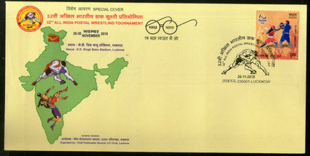 India 2018 Postal Wrestling Tournament Sport Map Special Cover # 18476