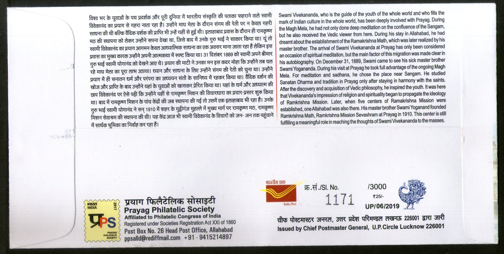 India 2019 Swami Vivekananda in Prayag Religion Festival Special Cover #18582
