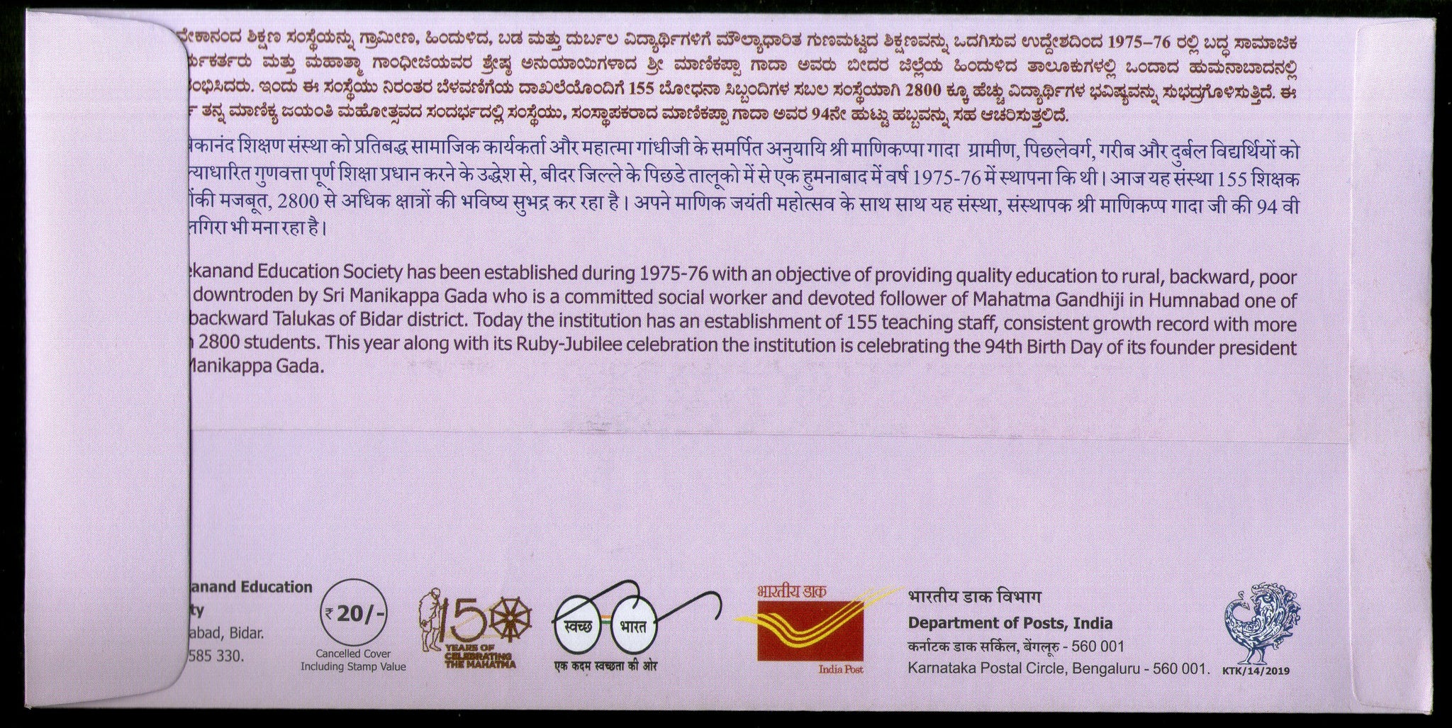 India 2019 Vivekanand Education Society Ruby Jubilee Special Cover # 6685