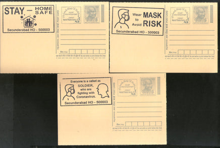 India 2020 3 Diff. COVID-19 Slogan Cancellation on Gandhi Post Card Mint