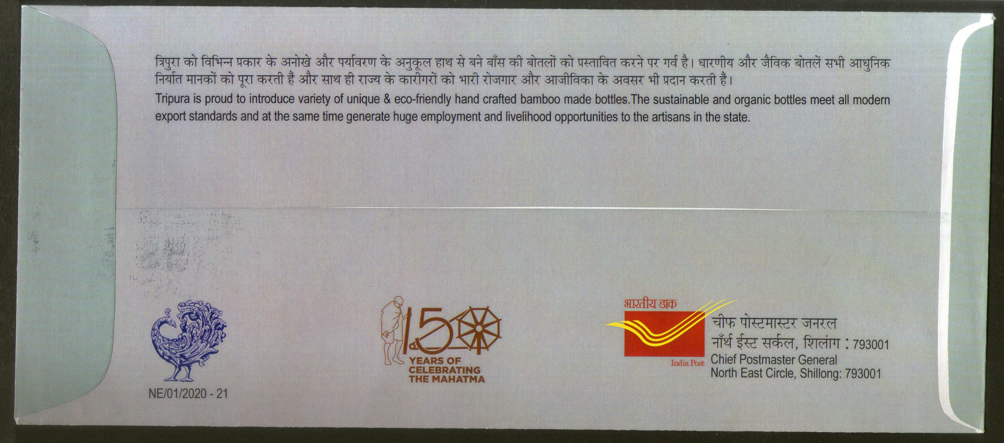 India 2020 Tripura’s Bamboo Bottles Eco-Friendly Organic Hand Craft Special Cover # 18628