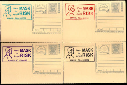 India 2020 Wear Mask COVID-19 4 diff Colour Slogan Cancellation on Gandhi Post Card Mint