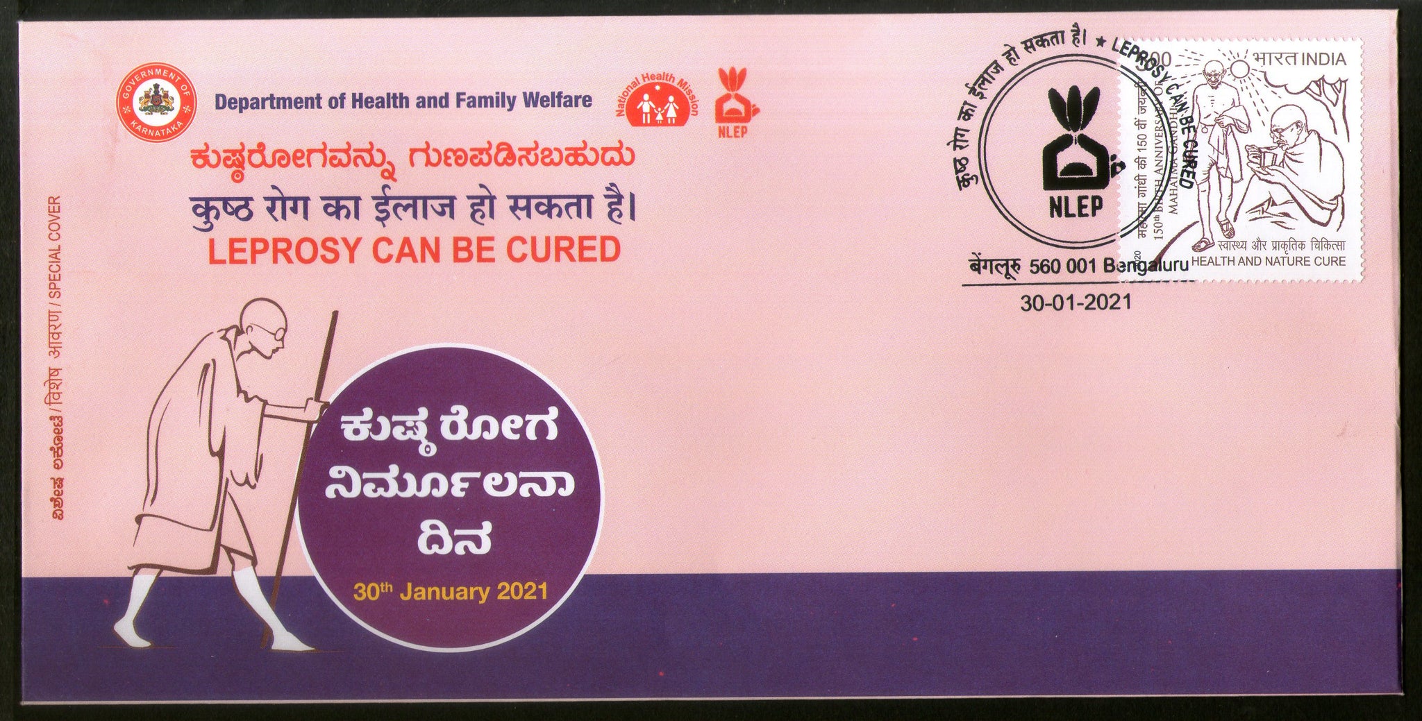 India 2021 Mahatma Gandhi Leprosy Can Be Cured Health Bangaluru Special Cover # 18661