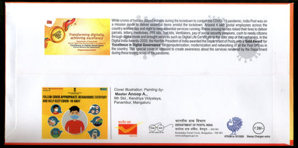 India 2021 Please Wear Mask Postal Services During COVID-19 Health Bangaluru Special Cover # 7500