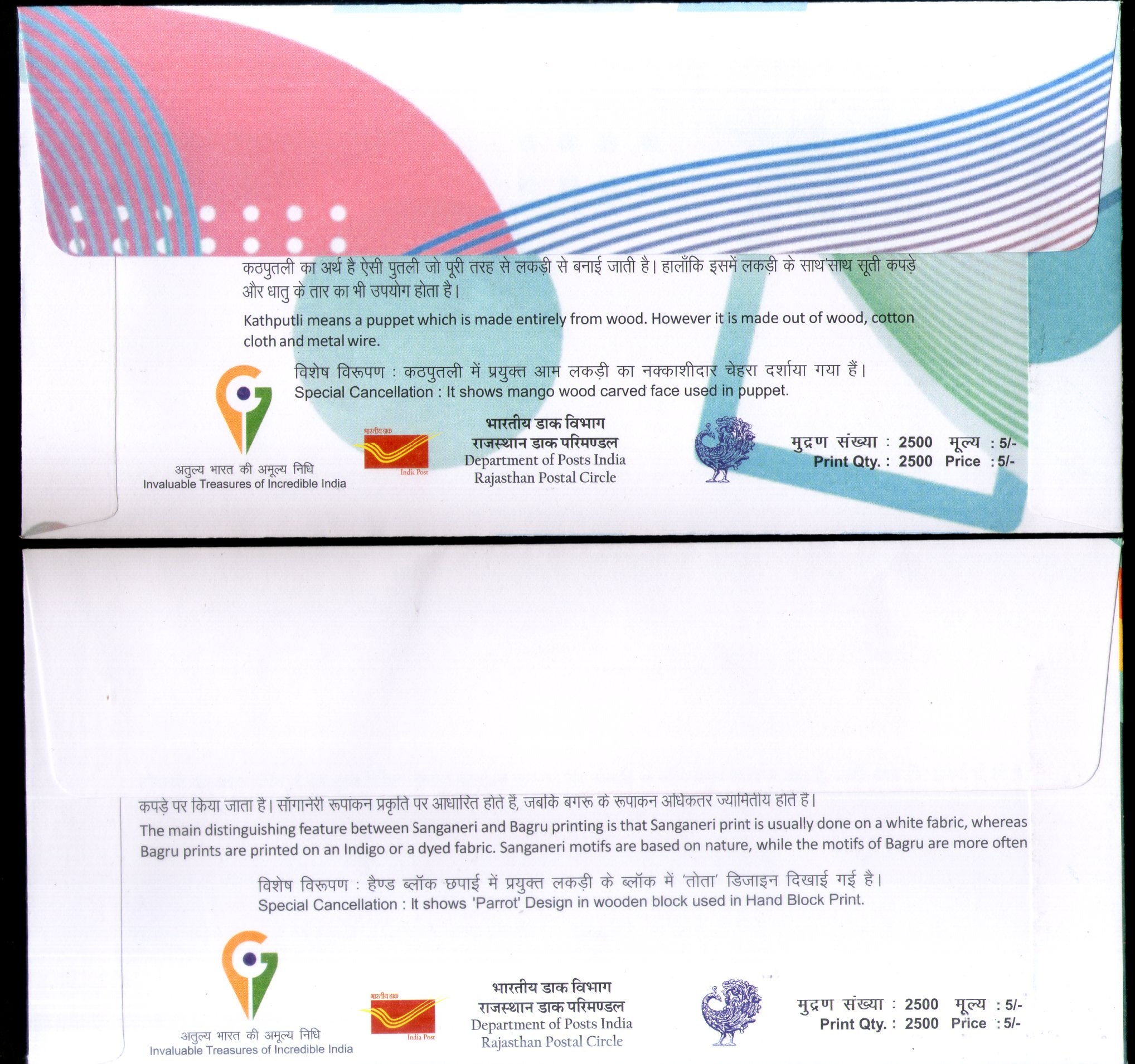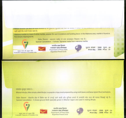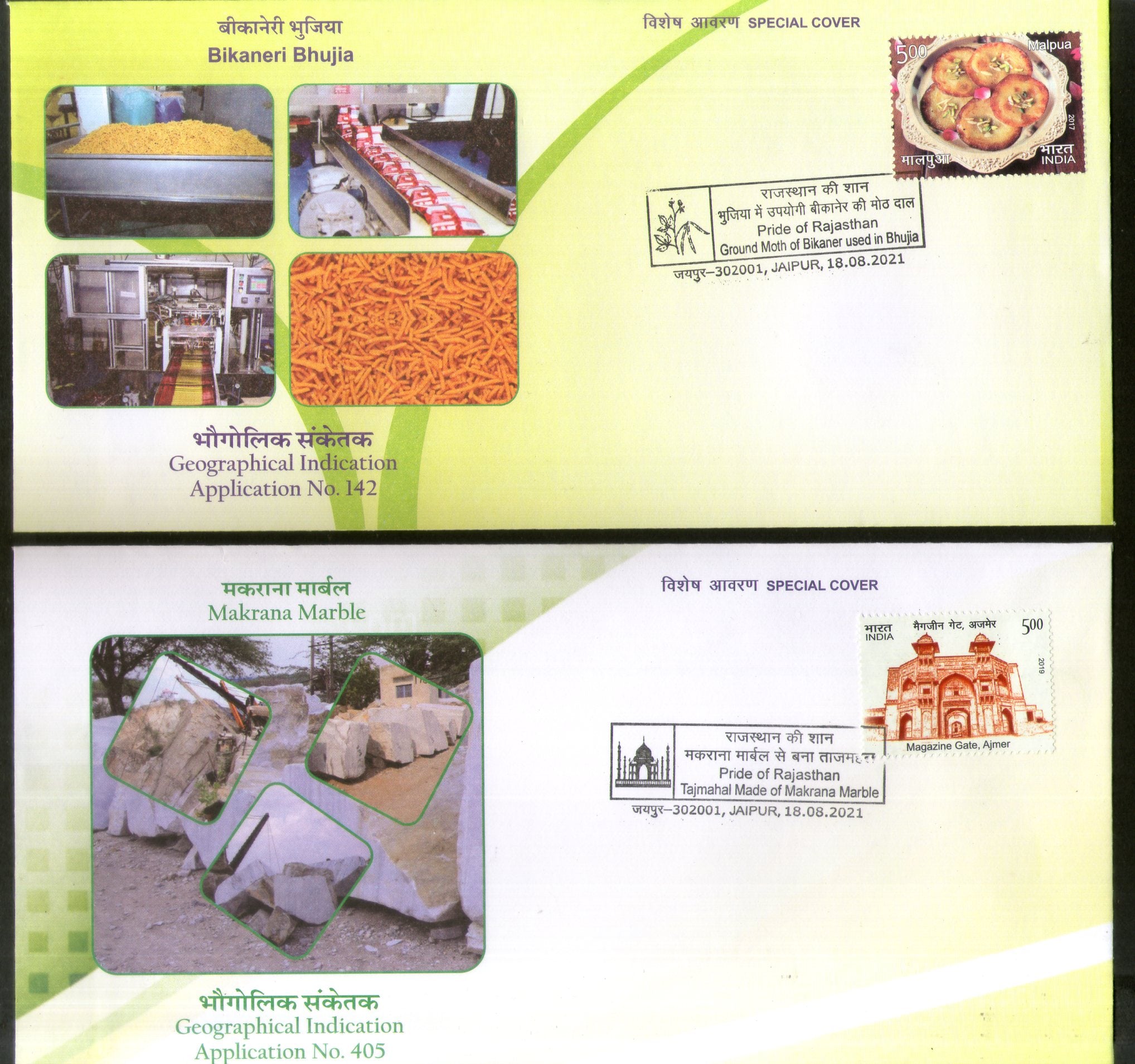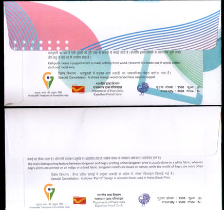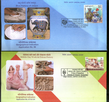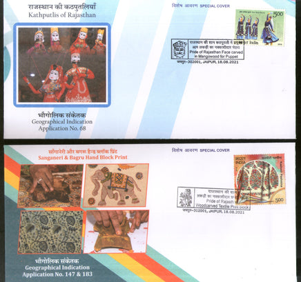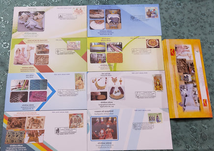 India 2021 Puppet Food Tajmahal Textile Terracotta Pottery Tribal Jewellery Wood Carved Handicraft GI Tag 8 Diff. Special Cover # 18771
