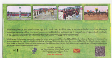 India 2022 Sainik School Bhubaneswar Defence Military Special Cover # 6823