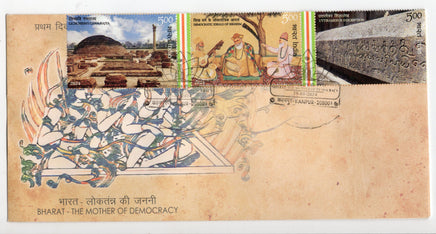 India 2024 Bharat - The Mother of Democracy Buddhism Sikhism 3V FDC # 7456