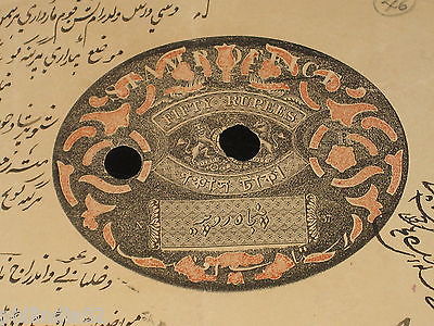 India Fiscal 50 Rs. Congreve Stamp Paper Type 13 Die-37 Coat of Arms # B046