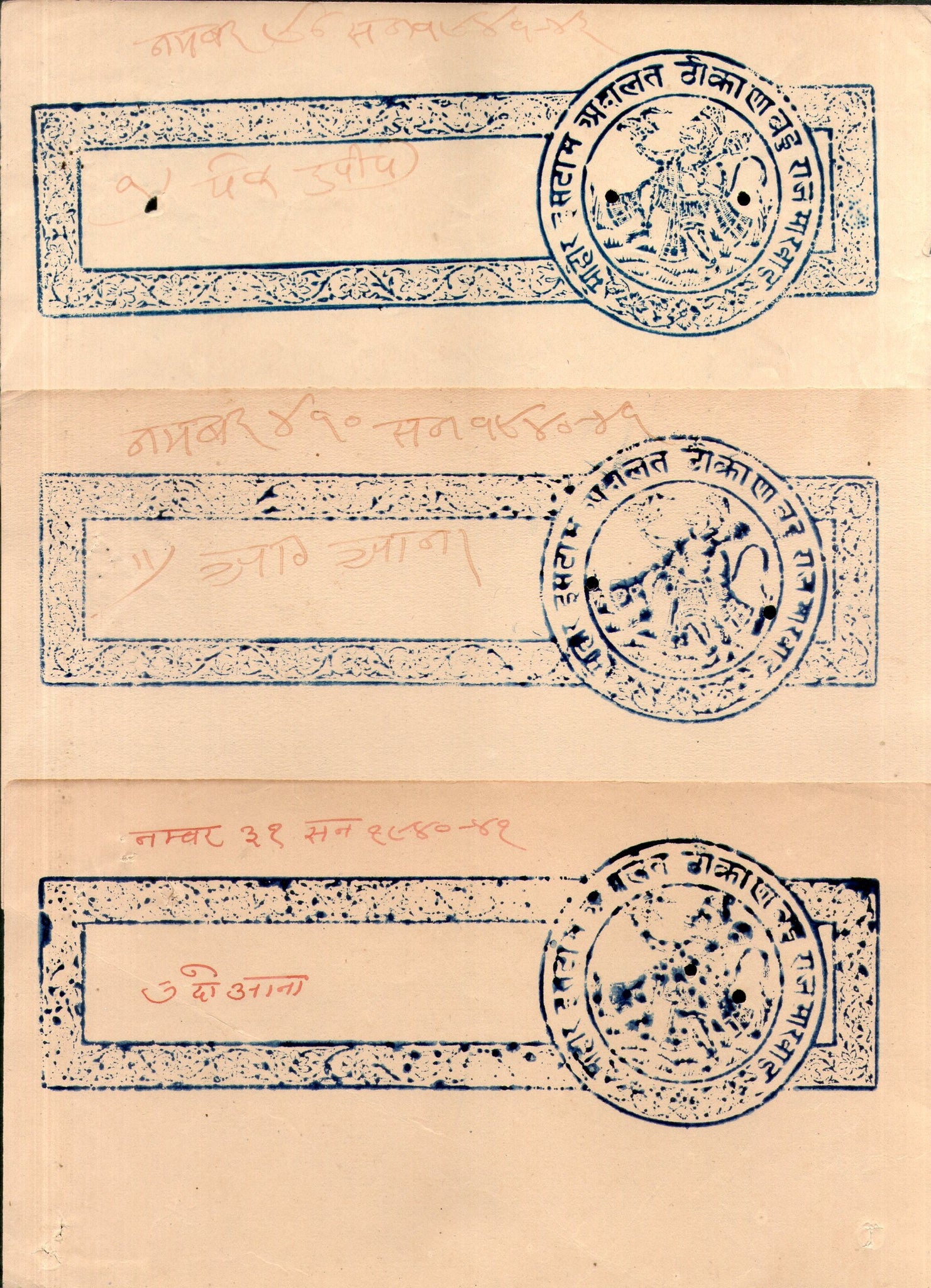 India Fiscal Badu Thikana Jodhpur State 3 diff Stamp Paper pieces T15 Revenue #F