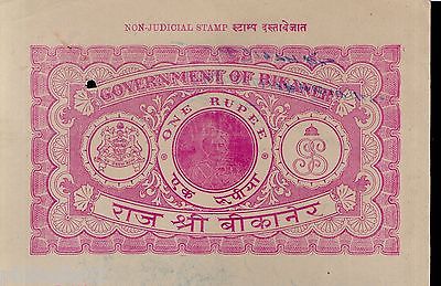 India Fiscal Bikaner State 1Re Non Judicial Stamp Paper Type80 KM809 # 10615A