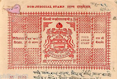 India Fiscal Bikaner State 4As Non Judicial Stamp Paper Type45 KM454 # 10504A
